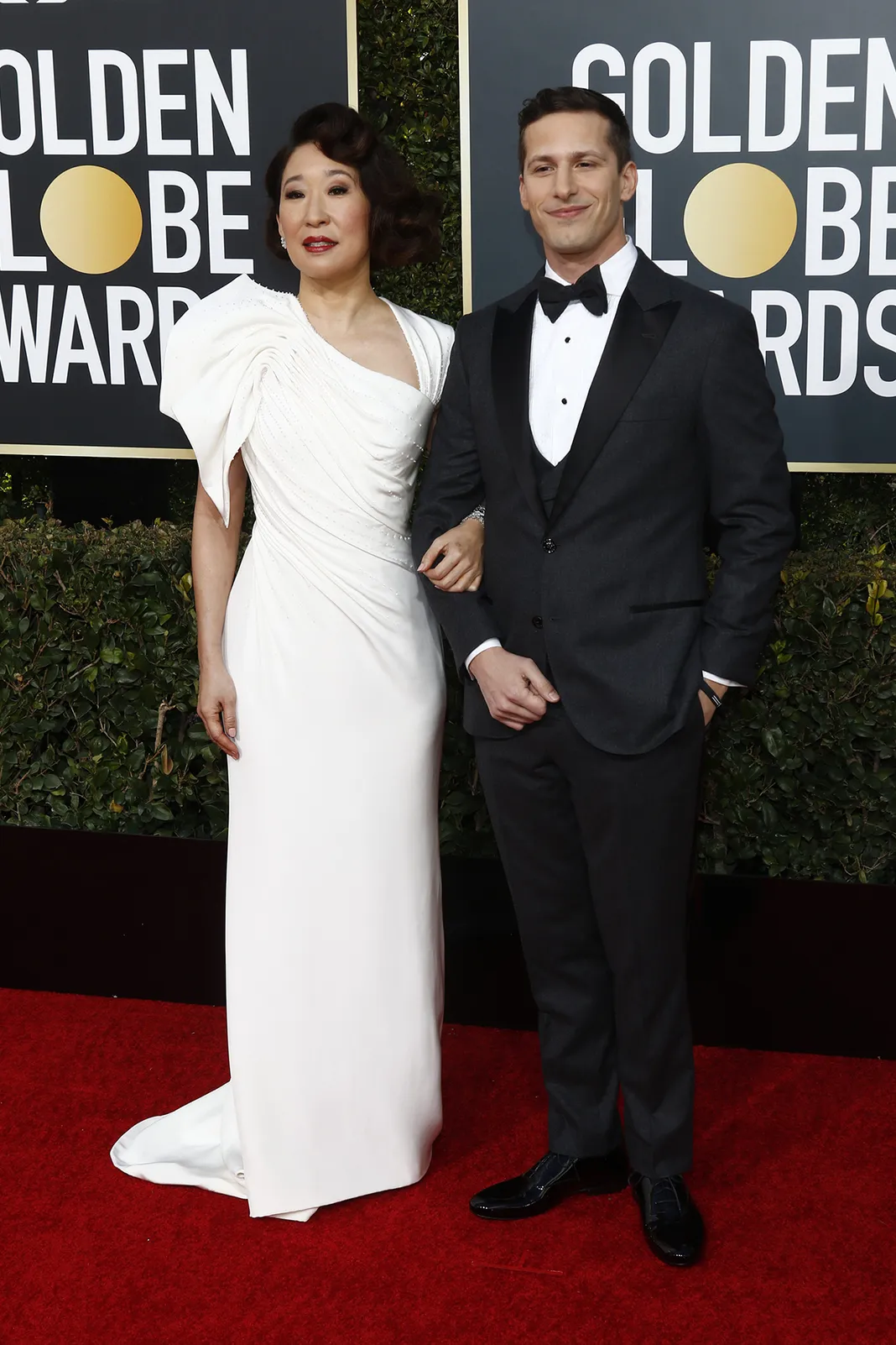 Andy Samberg and Sandra Oh at the Golden Globes 2019 red ... : Andy Samberg And Sandra Oh Had Chemistry And Great Intentions, But They Couldn't Corral Lots Of Surprises Into A Great Golden Globes.