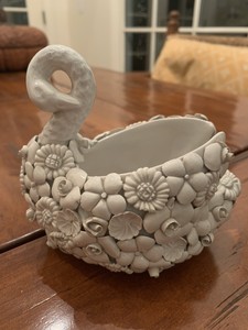Antiques & Collectibles -- swan Capo-Di-Monte , Capodimonte Mollica Made In Italy Ceramic Basket.