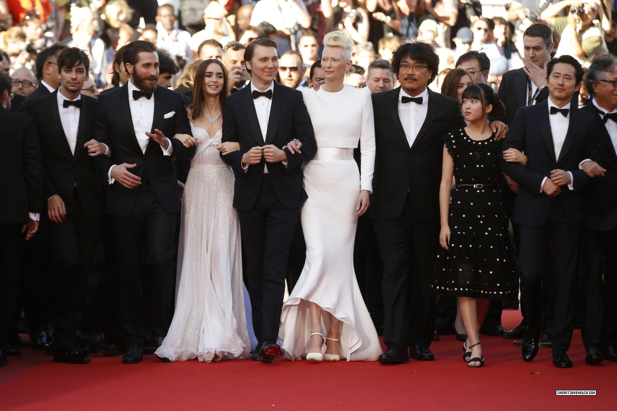 Jake Gyllenhaal and Lily Collins (With images) | Lily ... , Tilda Swinton, Jake Gyllenhaal, Lily Collins, Paul Dano, Steven Yeun, Director Bong Joon Ho And More On The Red Carpet For The Premiere Of Okja At The.